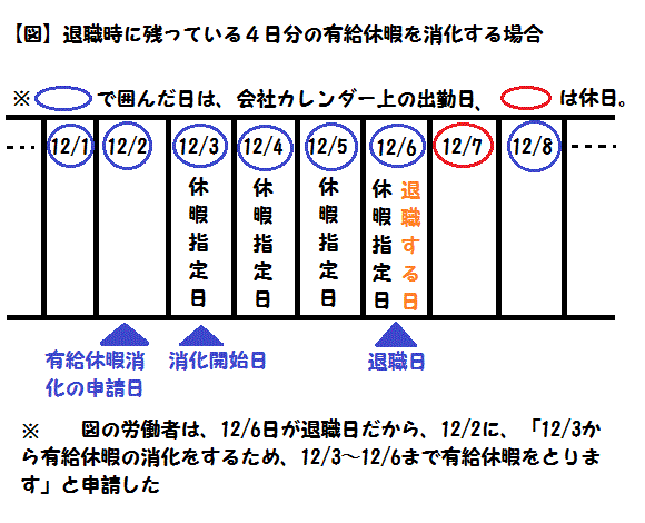 労働者は12月6日に退職することが決まっているため、6日より後には当然有給休暇は取得できません。退職と同時に有給休暇を使う権利は消えてしまうからです。
