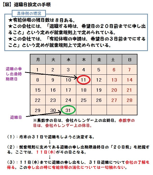 - 設定作業:退職日を決め、その日に退職することについて会社の合意を得る